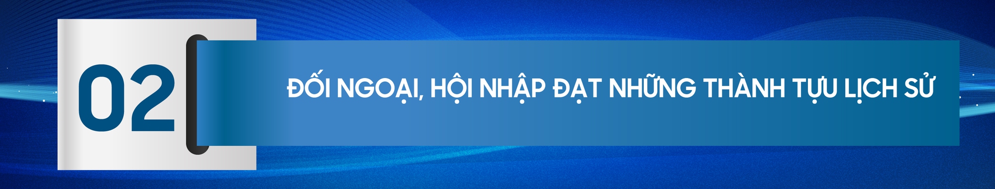 Nhiều thành tựu đối ngoại quan trọng có tính lịch sử, tạo thời cơ, vận hội mới để phát triển đất nước; nổi bật là công tác chuẩn bị và tổ chức đón, tiếp thành công các chuyến thăm chính thức cấp nhà nước tới Việt Nam của Tổng Bí thư, Chủ tịch Trung Quốc Tập Cận Bình và Tổng thống Hoa Kỳ Joe Biden. Một loạt chuyến thăm và làm việc ở nước ngoài của lãnh đạo Đảng, Nhà nước đã làm sâu sắc thêm quan hệ tốt đẹp với nhiều đối tác quan trọng. Hình ảnh, tầm vóc, uy tín và vị thế Việt Nam được nâng lên tầm cao mới.