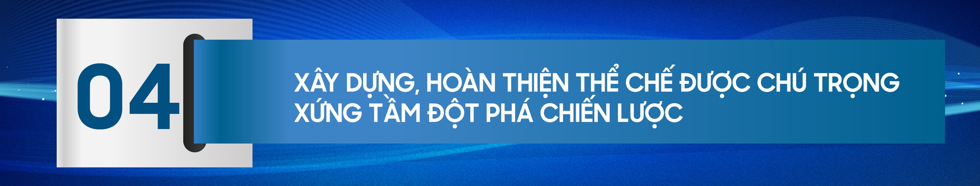 Công tác xây dựng, hoàn thiện thể chế, pháp luật, cơ chế, chính sách được chú trọng xứng tầm đột phá chiến lược với nhiều đổi mới trong chỉ đạo, cách làm. Chính phủ đã nhận được sự chia sẻ, đồng hành, phối hợp chặt chẽ Quốc hội và Ủy ban Thường vụ Quốc hội.