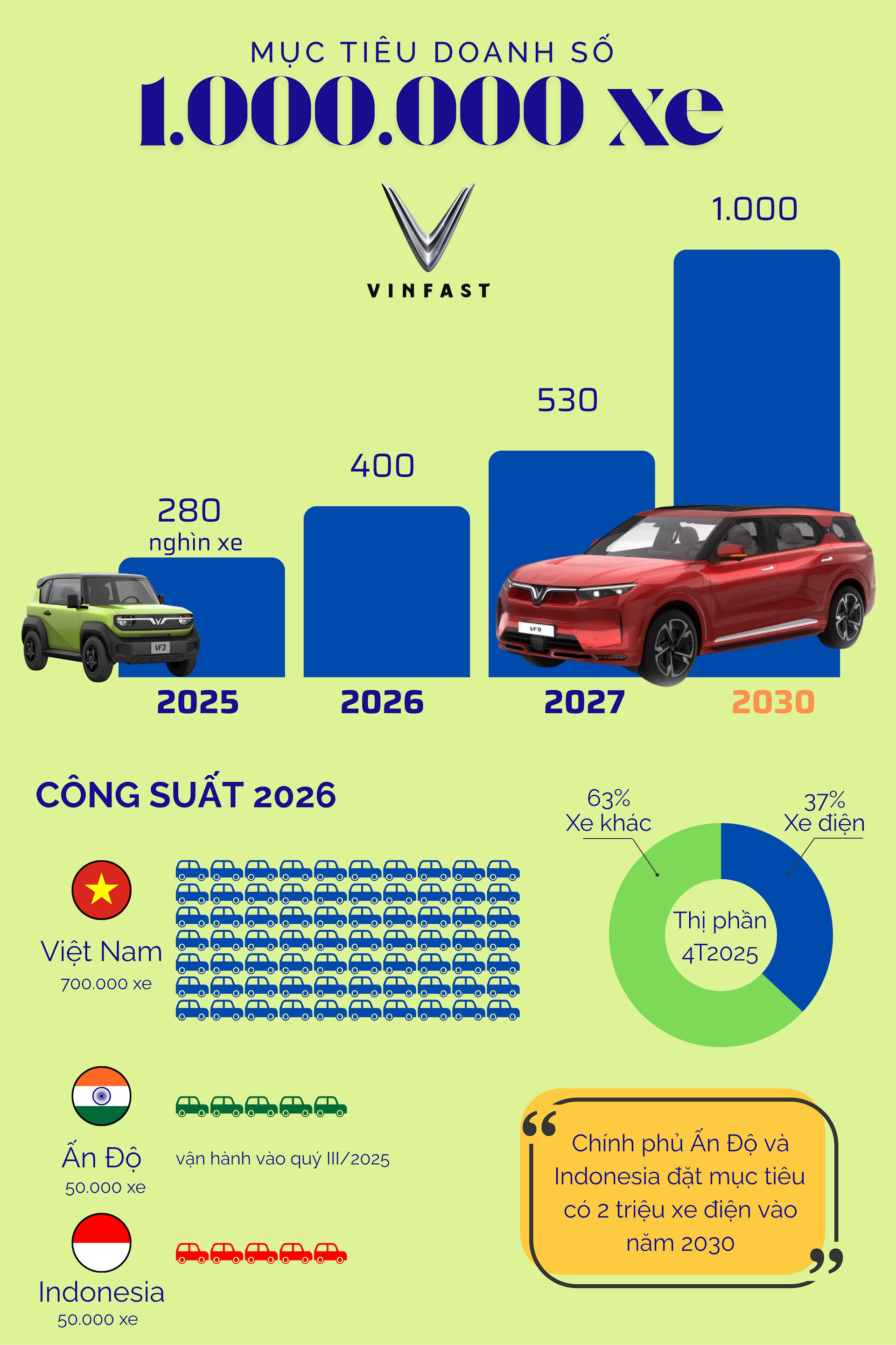 Nhà máy của VinFast tại Ấn Độ sẽ chính thức vận hành vào quý III/2025 với công suất giai đoạn 1 là 50.000 xe/năm, trong khi đó nhà máy tại Indonesia có công suất tương tự. "Cả 2 nhà máy này đều được thiết kế để mở rộng công suất một cách nhanh chóng nếu nhu cầu thị trường tăng lên", bà Hải chia sẻ.