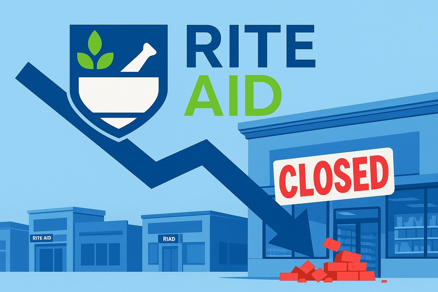 Do cạn kiệt tiền mặt và thất bại trong việc đảm bảo nguồn tài chính, Rite Aid đã tuyên bố sẽ bán hết tất cả tài sản còn lại và đóng cửa mọi chi nhánh. Theo đó, chuỗi hiệu thuốc này bán phần lớn dịch vụ dược phẩm tại các cửa hàng cho các đối thủ cạnh tranh là CVS Pharmacy, Walgreens, Albertsons và Kroger, với tổng cộng hơn 1.000 địa điểm.