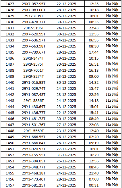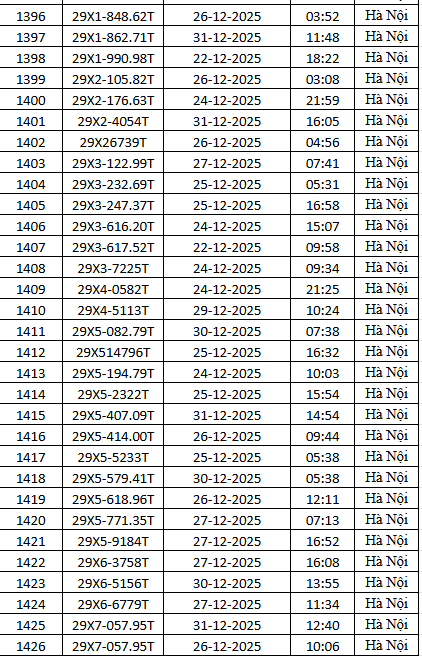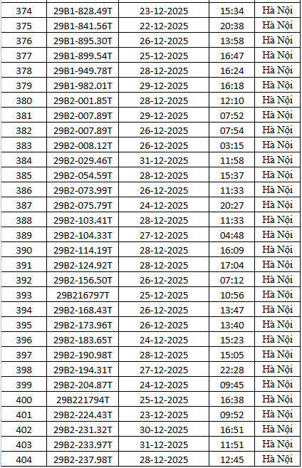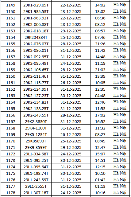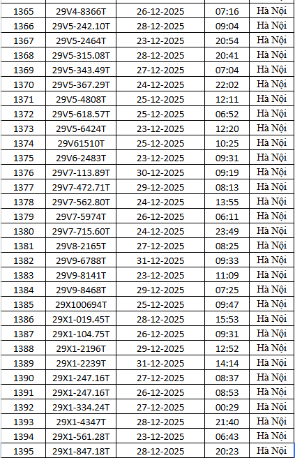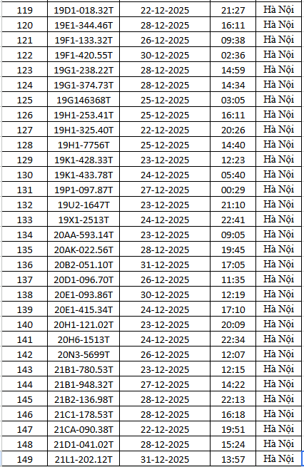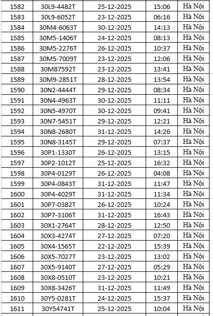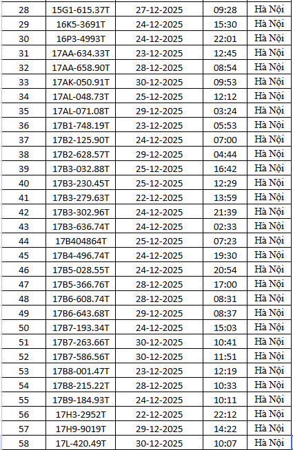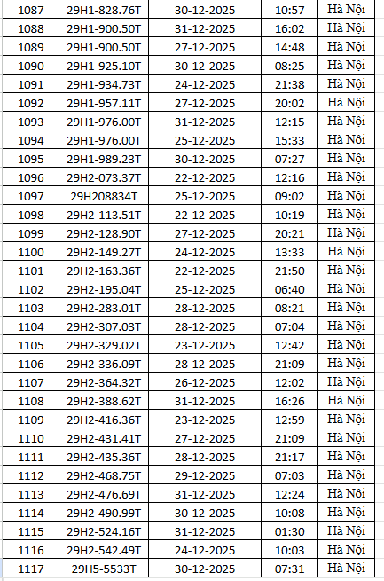 Danh sách xe máy vi phạm được hệ thống camera AI của Công an TP Hà Nội ghi nhận: