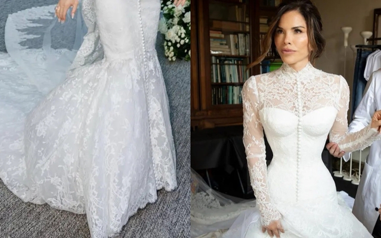 Nguồn tin từ Page Six cho biết, bộ váy sử dụng chất liệu ren Ý cao cấp và có phần đuôi váy trải dài cầu kỳ, thể hiện phong cách lãng mạn đặc trưng của Dolce & Gabbana. Phía sau lớp corset, hàng trăm chiếc nút được gắn tỉ mỉ, mỗi nút đều được may tay để đảm bảo độ chắc chắn và tạo hiệu ứng thị giác nổi bật khi cô dâu quay lưng bước lên lễ đường.