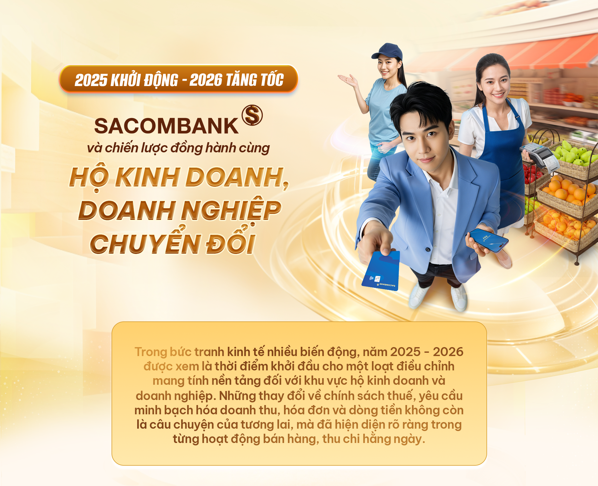 SACOMBANK xác định 2026 là năm của những thay đổi chiến lược rõ nét hơn đối với nhóm khách hàng hộ kinh doanh và doanh nghiệp chuyển đổi, không chỉ bằng sản phẩm, mà bằng cách tiếp cận tổng thể, dài hạn và sát với thực tế nhất của người bán.