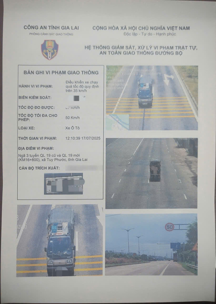 Phòng CSGT Công an tỉnh Gia Lai cho biết, vừa xử lý trường hợp vi phạm tốc độ nghiêm trọng về việc xe tải mang biển số 77C-088.xx do ông P.V.D. (trú phường Quy Nhơn, tỉnh Gia Lai) làm chủ, đã 21 lần "nhấn ga vượt giới hạn" chỉ trong chưa đầy 7 tháng, từ 26/12/2024 đến 17/7/2025.