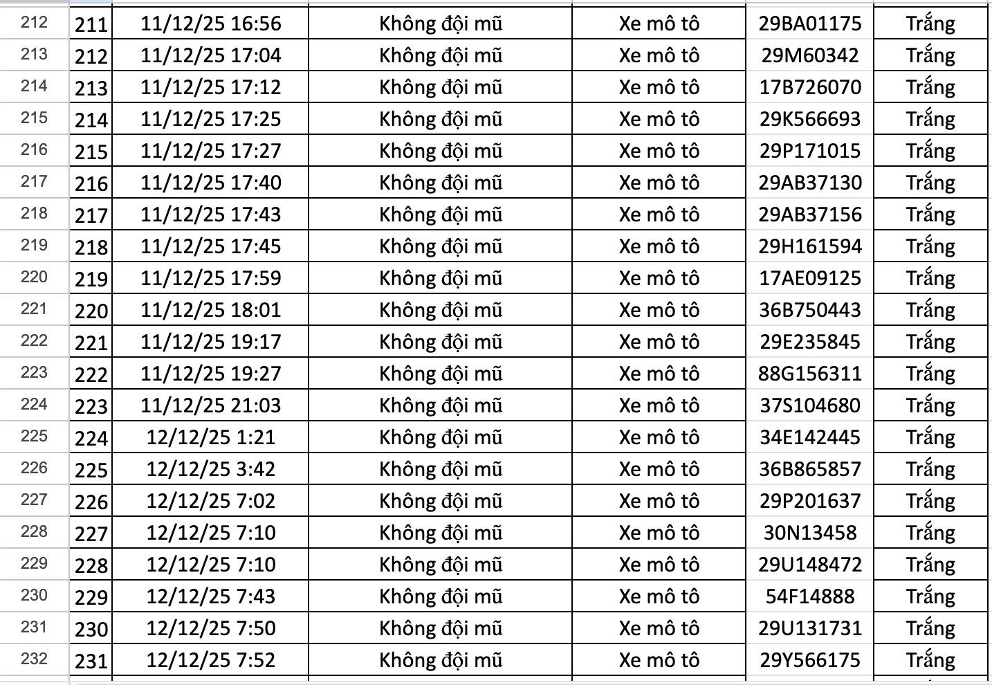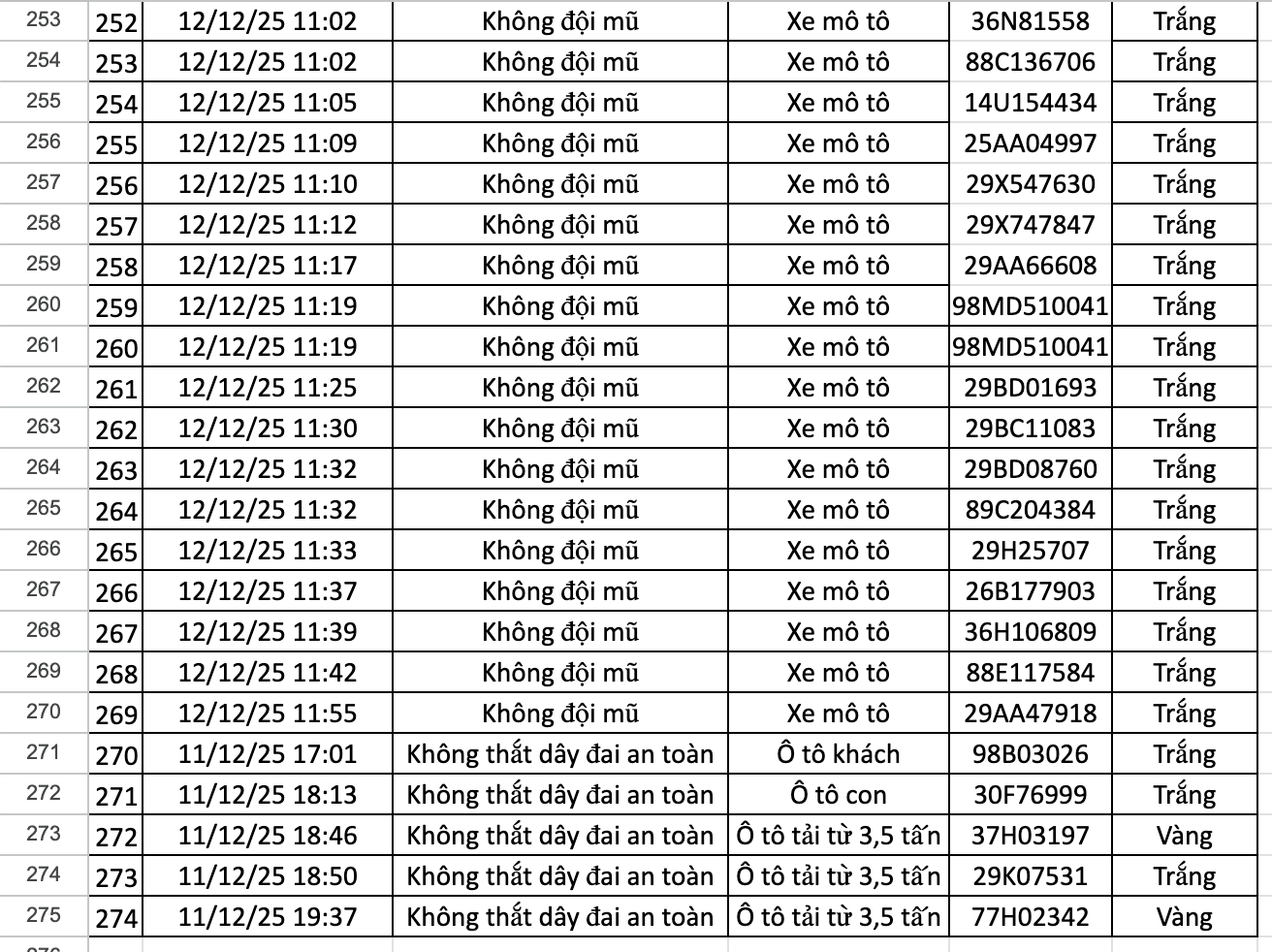 Từ 12h ngày 11/12 đến 12h ngày 12/12/2025, hệ thống camera tích hợp trí tuệ nhân tạo (AI) trên các tuyến đường tại Hà Nội và cao tốc Nội Bài - Lào Cai đã ghi nhận lượng phương tiện lớn cùng nhiều hành vi vi phạm giao thông.
