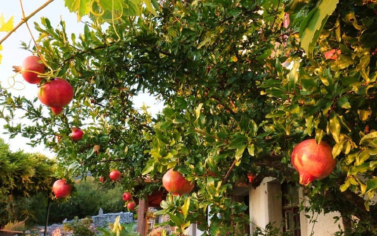 Không chỉ mang giá trị tinh thần, cây lựu còn cho quả giàu vitamin, tốt cho tim mạch và hệ miễn dịch. Tán cây không quá rậm nhưng đủ để tạo bóng mát nhẹ, giúp giảm nhiệt độ khu vực trước nhà trong những ngày nắng nóng.