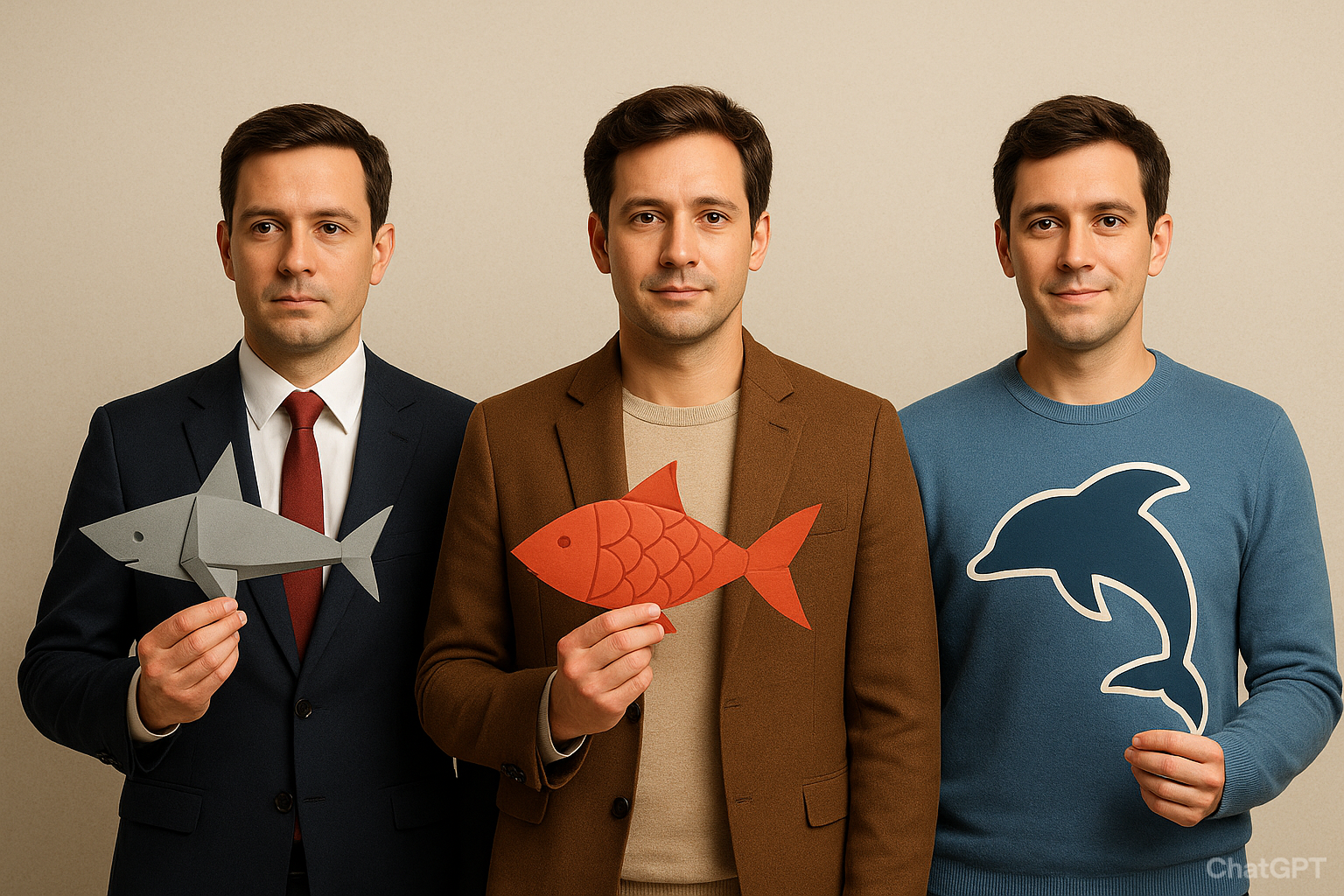 Cuốn Strategy of the Dolphin của hai tác giả Dudley Lynch và Paul L. Kordis đưa ra một cách tiếp cận rất thú vị: nhìn nhận hành vi và tư duy của con người qua ba hình ảnh ẩn dụ – cá mập, cá chép và cá heo. Ẩn sau những cái tên tưởng chừng vui tai ấy là ba kiểu tâm lý phổ biến mà mỗi người trong chúng ta ít nhiều sẽ thấy mình thuộc về một nhóm hoặc pha trộn giữa các nhóm.