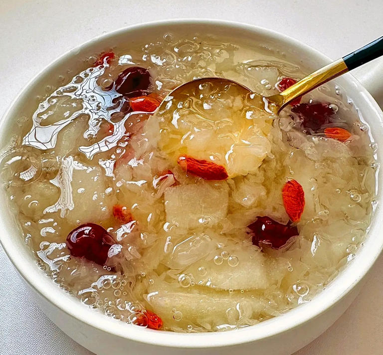 Nấm tuyết chứa nhiều hợp chất có khả năng giữ nước và chống oxy hóa, hỗ trợ làn da đủ ẩm. Lê cung cấp vitamin và nước, giúp cải thiện cảm giác khô da. Dù không “bơm” collagen trực tiếp, món chè này có thể hỗ trợ làn da thông qua việc cải thiện tình trạng oxy hóa và mất nước.