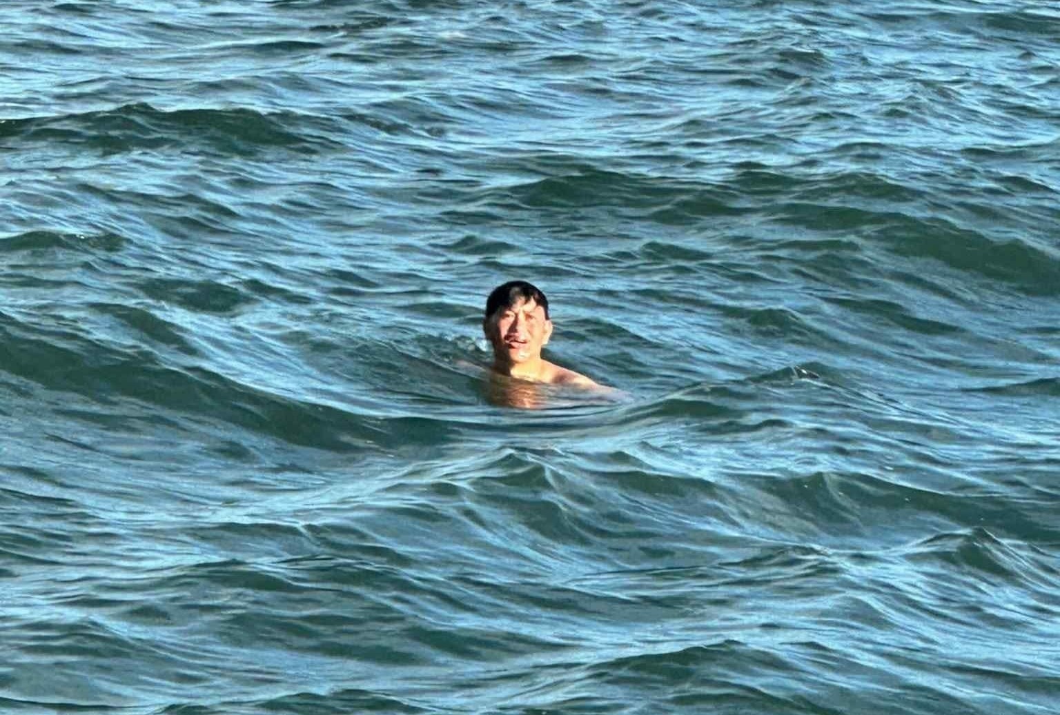 Lê Văn Sanh thời điểm tàu tìm kiếm phát hiện vẫn bơi khỏe sau 2 ngày trôi dạt