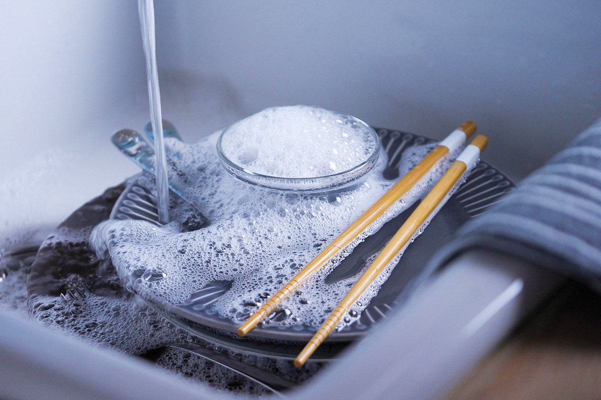 2. Ngâm đũa lâu trong nước hoặc chất tẩy rửa