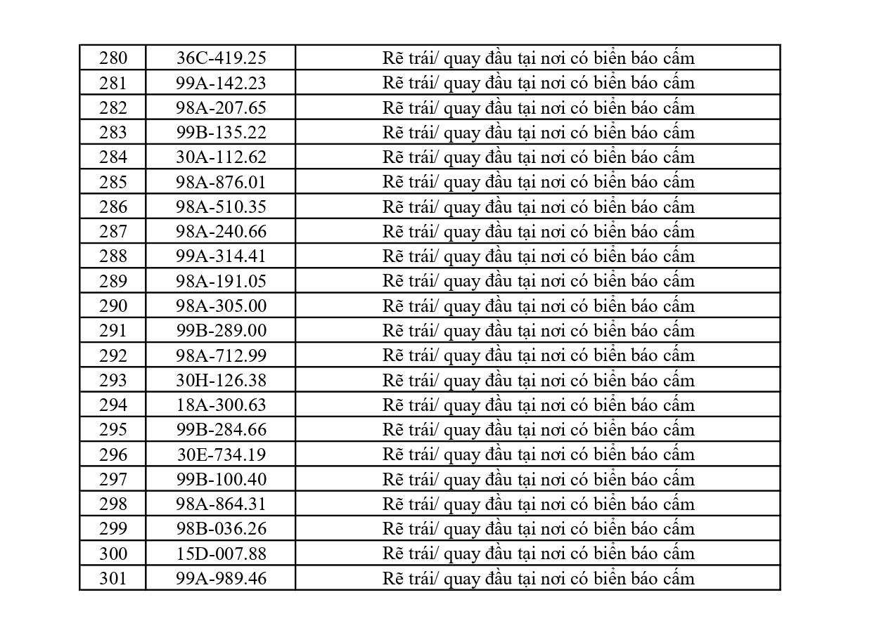 3. Rẽ trái/quay đầu nơi có biển cấm: 27 trường hợp