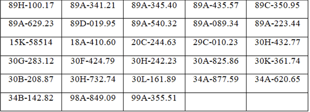 Danh sách các phương tiện vi phạm tại Hà Nội như sau: