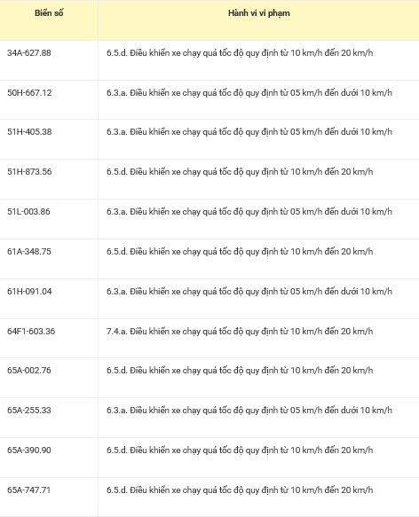 Trong khi đó, tại An Giang, Phòng Cảnh sát giao thông Công an tỉnh cho biết, từ ngày 1/3 đến 14/3/2026, thông qua hệ thống camera giám sát và các thiết bị nghiệp vụ, lực lượng chức năng đã phát hiện nhiều trường hợp điều khiển phương tiện vi phạm tốc độ.