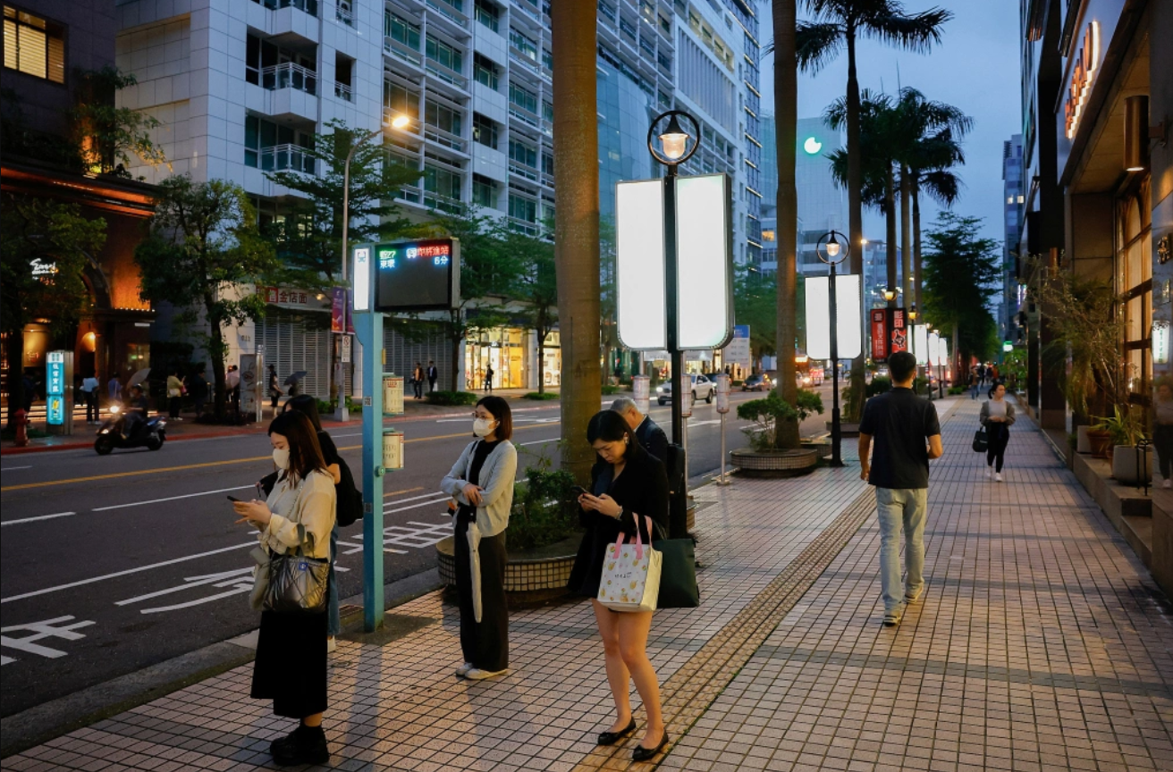 Người dân chờ xe buýt ở Đài Bắc, Đài Loan. Ảnh: Reuters
