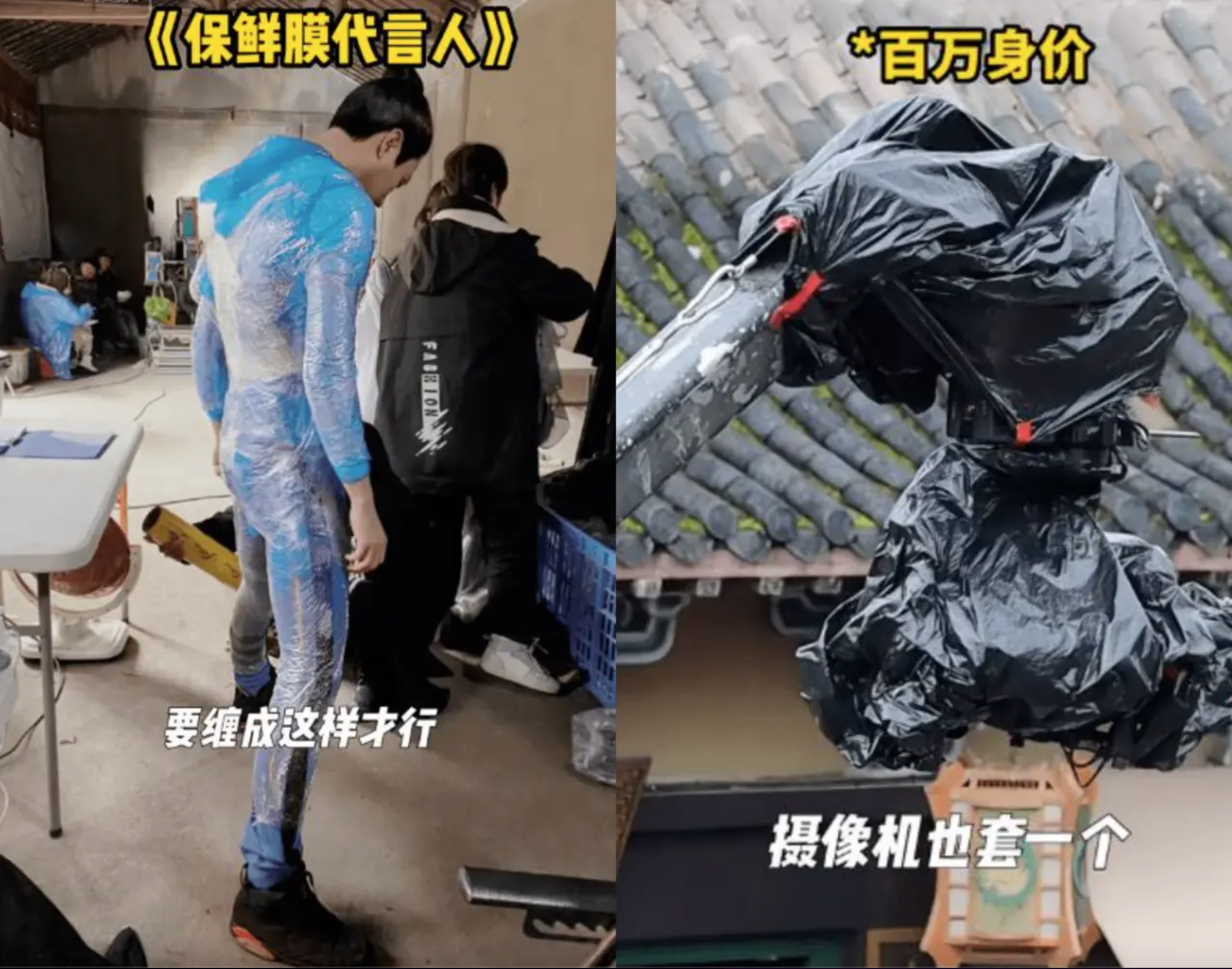 Thực tế, các đoàn làm phim đã có những bí quyết riêng để bảo vệ diễn viên và thiết bị. Một đoàn làm phim Trung Quốc từng tiết lộ, trước khi thực hiện cảnh quay, các diễn viên sẽ được mặc một chiếc áo mưa mỏng, sau đó quấn nhiều lớp màng bọc thực phẩm bên trong. Cách này giúp họ giữ ấm cơ thể, tránh bị nhiễm lạnh. Không chỉ diễn viên, những chiếc máy quay phim đắt tiền cũng được bọc cẩn thận bằng túi nhựa để tránh hư hỏng.