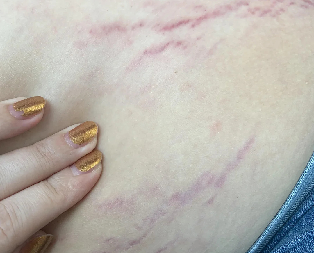 2. Da mỏng, dễ bầm và xuất hiện rạn da tím đỏ