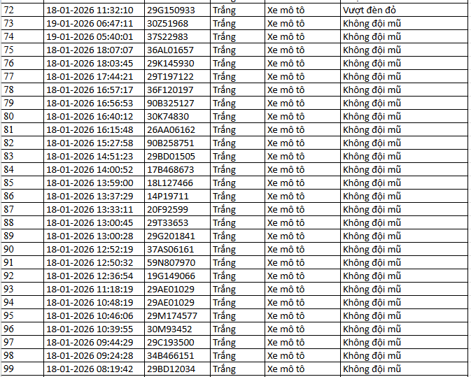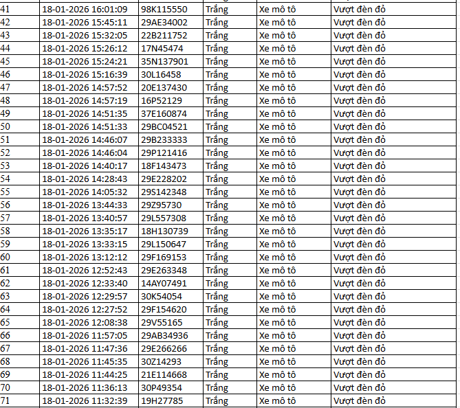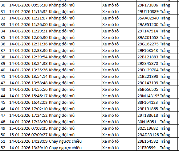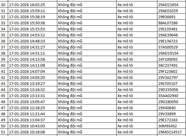 Từ 12h00’ ngày 17/1/2026 đến 12h00’ ngày 18/1/2026, đã phát hiện 50 trường hợp xe máy vi phạm.