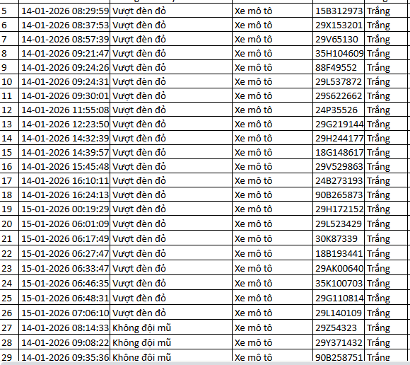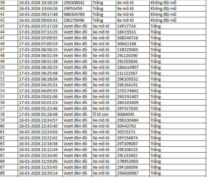 Từ 12h00’ ngày 14/1/2026 đến 12h00’ ngày 15/1/2026, đã tự động phát hiện 48 trường hợp xe máy vi phạm.