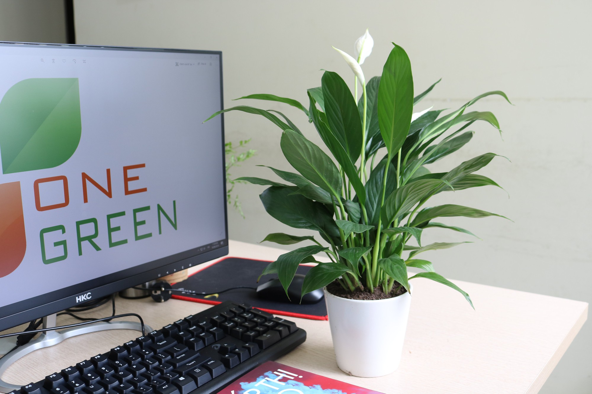 Lan ý có hoa trắng muốt và lá xanh bóng mát mắt, mang lại vẻ thanh lịch cho bàn làm việc. Cây nổi bật với khả năng lọc khí mạnh, hấp thụ nhiều chất độc. Đồng thời, hình dáng mềm mại và sắc trắng tinh khiết của hoa giúp tạo cảm giác yên bình, nhẹ nhõm - như một “nút xả stress” tự nhiên cho góc làm việc của bạn.