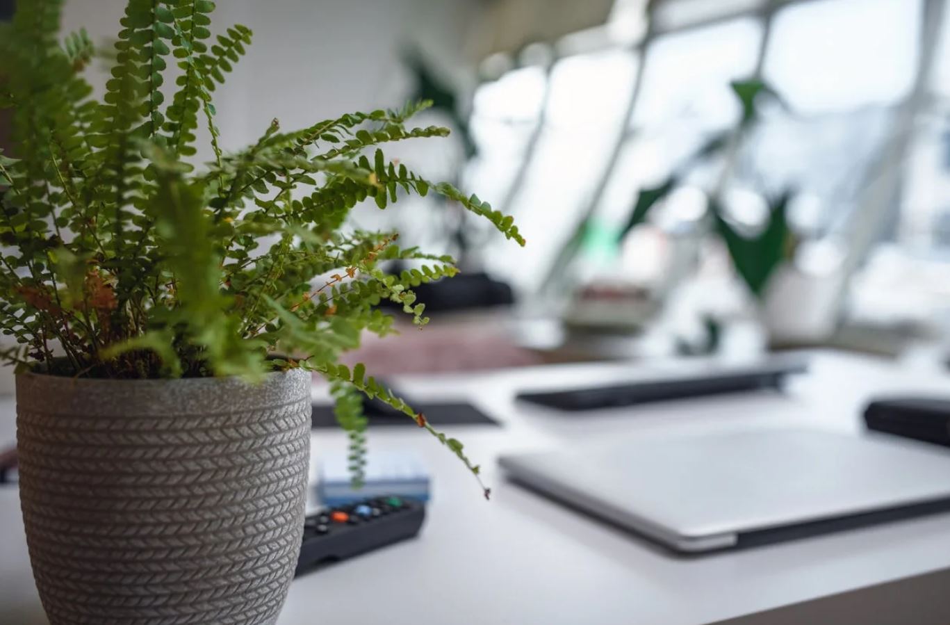 Nhiều nghiên cứu cho thấy cây xanh trong phòng làm việc có thể giảm căng thẳng, ví dụ như nghiên cứu từ Hiệp hội Khoa học Làm vườn Hoa Kỳ. Tuy nhiên, bạn cần cẩn trọng khi đặt cây gần thiết bị điện tử như máy tính, máy in, ổ cắm, dây điện…