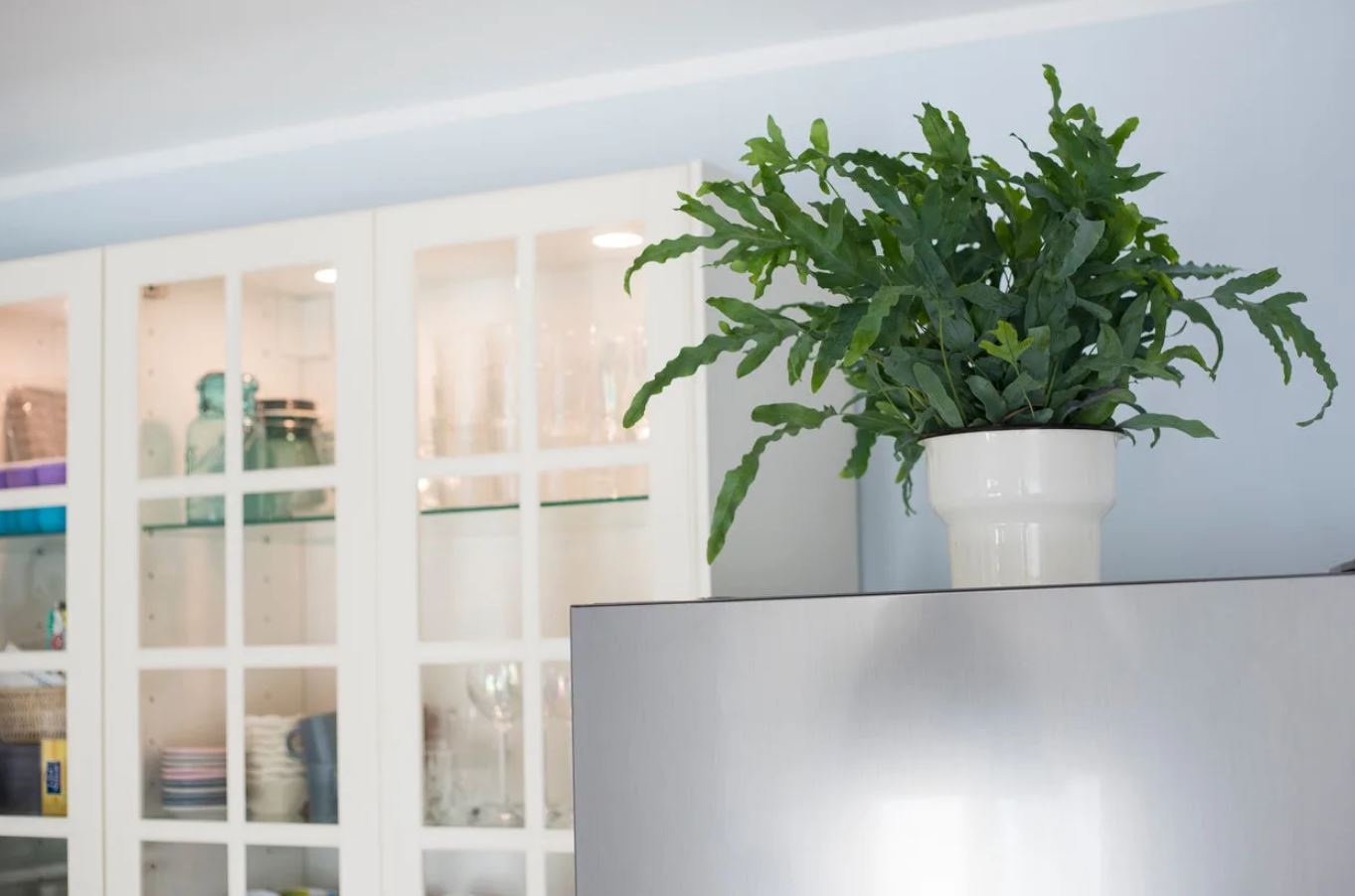 Đặt cây trên nóc tủ lạnh luôn là ý tưởng tồi. Trước hết, trừ khi tủ lạnh đặt ngay trước cửa sổ, còn không thì ánh sáng nơi này sẽ không đủ cho đa số cây phát triển. Tủ lạnh thường được đặt sát tường trong bếp — những nơi tối và thiếu ánh sáng, hoàn toàn không phù hợp với cây.