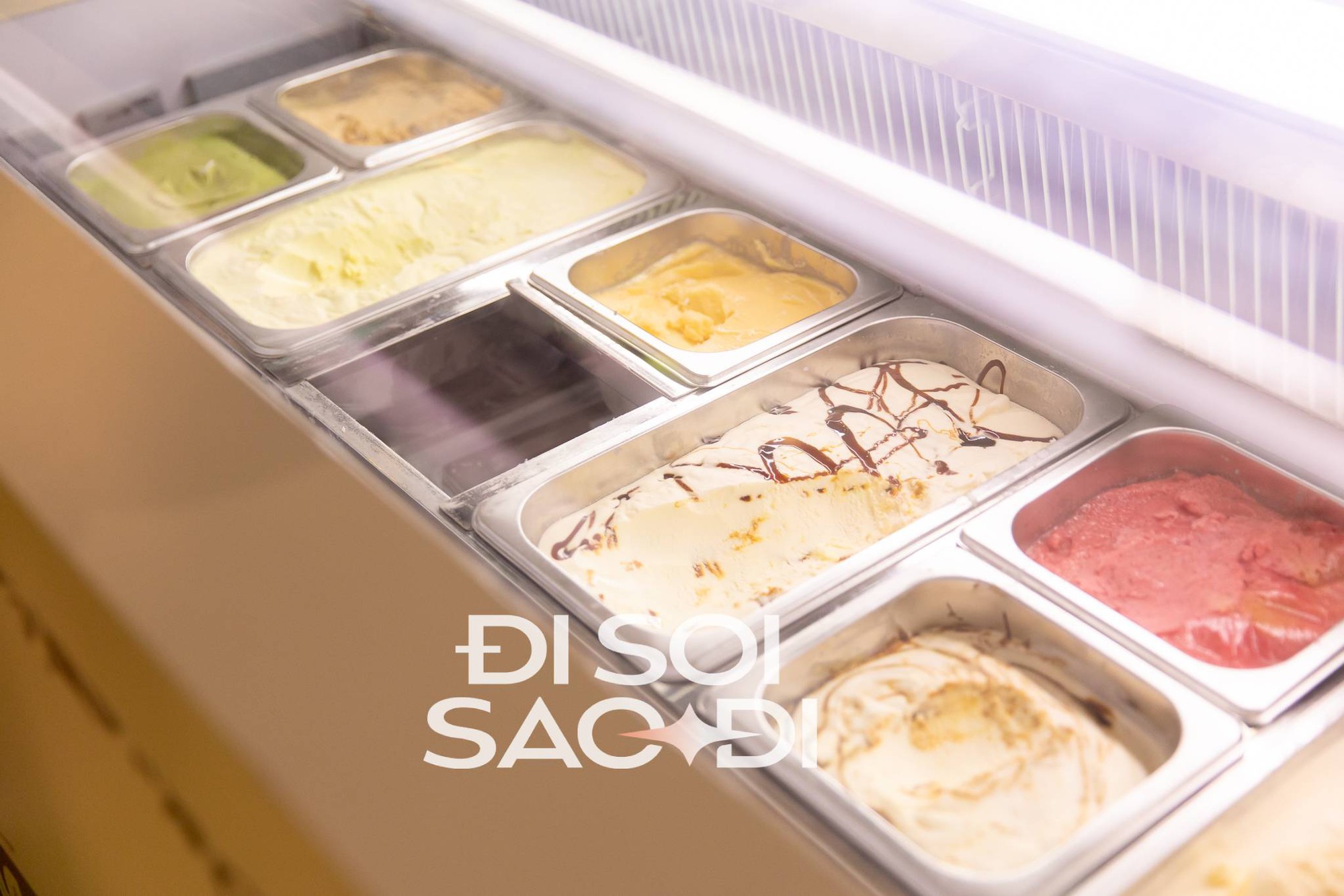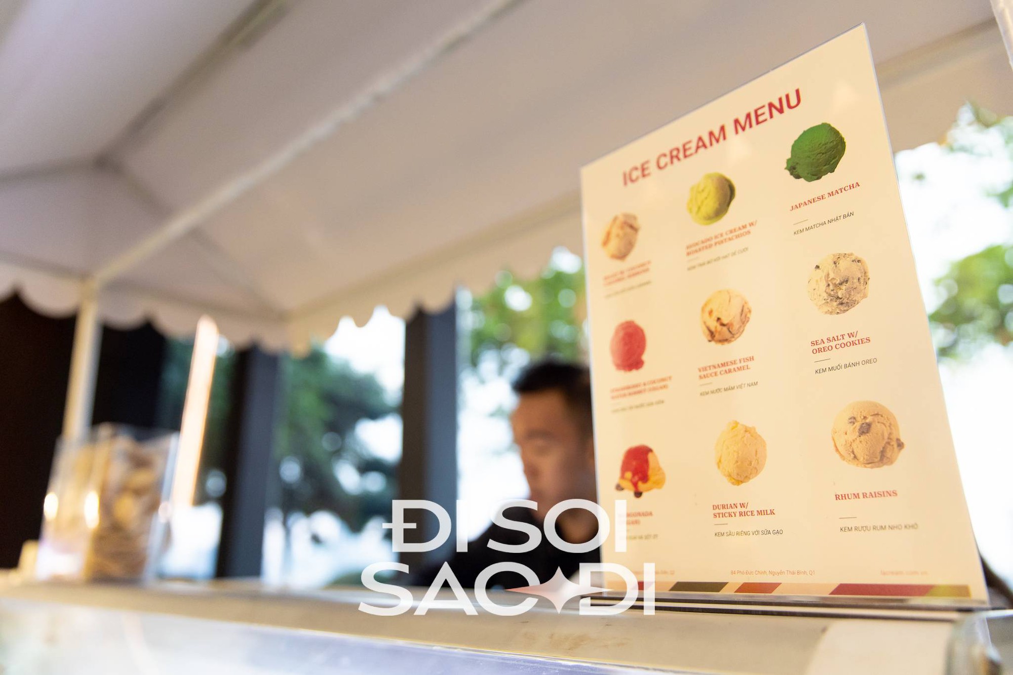Ngoài thực đơn xa hoa, tiệc cưới còn có quầy kem riêng dành cho khách. Việc xuất hiện thêm quầy kem khiến tổng thể bữa tiệc thêm phần thú vị, đúng chất một hôn lễ được chuẩn bị kỹ lưỡng và tinh tế.