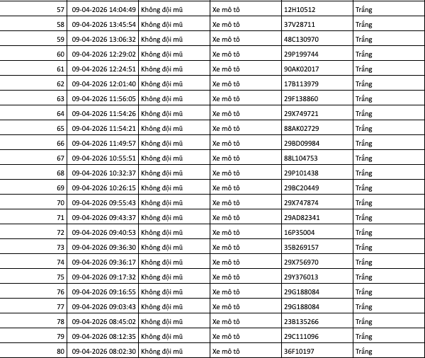 Danh sách phương tiện vi phạm phạt nguội ngày 10/4 bao gồm: