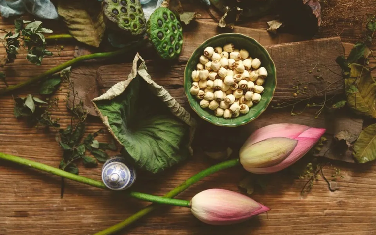 Hạt sen , theo y học cổ truyền, có tác dụng bổ tỳ, dưỡng thận. Dưới góc độ dinh dưỡng hiện đại, hạt sen chứa polysaccharide và polyphenol có khả năng chống oxy hóa. Phần tâm sen còn giàu alcaloid và flavonoid, có thể hỗ trợ ổn định huyết áp, đường huyết và nhịp tim. Nên ăn 1 đến 2 lần mỗi tuần, mỗi lần 20 đến 50 gram hạt sen khô. Khi chọn nên ưu tiên loại màu vàng nhạt tự nhiên, không quá trắng.