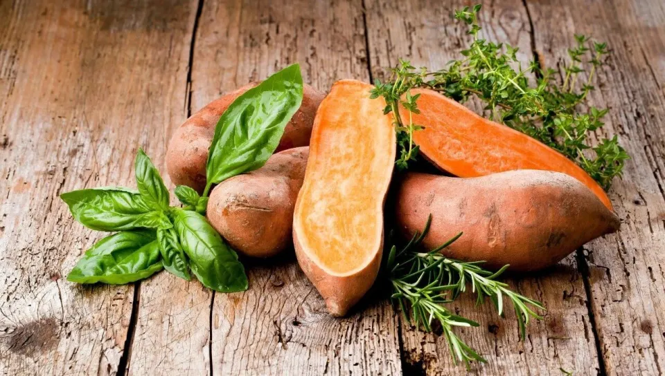 Khoai lang vàng và đỏ lại giàu carotenoid, đặc biệt là beta carotene với hàm lượng khoảng 1006 microgram mỗi 100 gram. Beta carotene có thể chuyển hóa thành vitamin A trong cơ thể, giúp bảo vệ thị lực, làn da và chống oxy hóa. Màu ruột càng đậm thì hàm lượng carotenoid càng cao. Khuyến nghị ăn 2 đến 3 lần mỗi tuần, mỗi lần 100 đến 200 gram. Không chỉ củ, lá khoai lang cũng chứa nhiều chất chống oxy hóa, có thể luộc hoặc xào nhẹ. Các thực phẩm màu vàng như bí đỏ, ngô cũng giàu carotenoid.