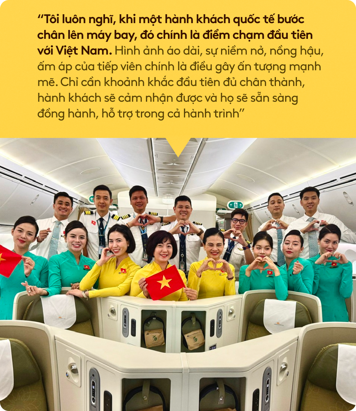 Với chị, chiếc áo dài trên chuyến bay không chỉ là đồng phục, mà còn là hình ảnh của một đại sứ văn hóa - biểu tượng của một đất nước thân thiện và mến khách.