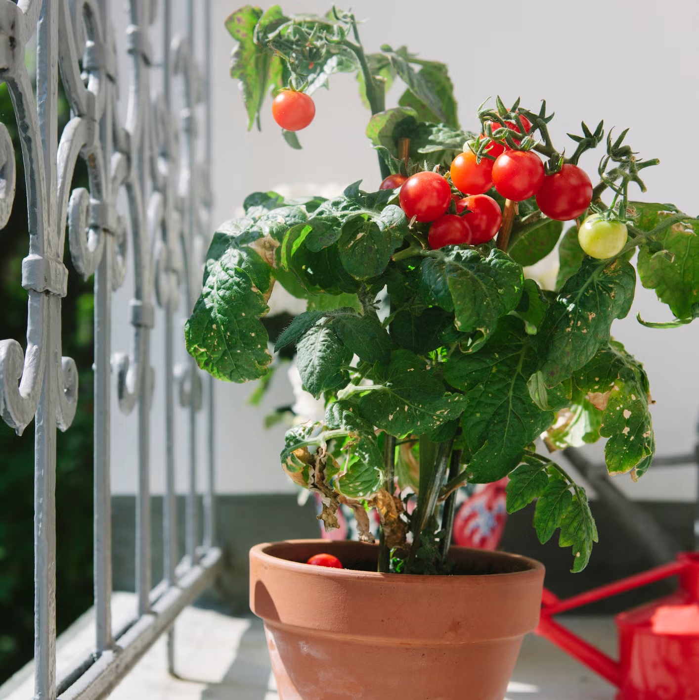 Cà chua, đặc biệt là cà chua bi, là một trong những loại cây rất thích hợp để trồng ở ban công. Loại cây này ưa nắng, nhưng cần được che chắn khỏi mưa, vì vậy ban công có ánh sáng tốt là vị trí lý tưởng.