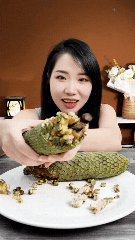 Theo review từ TikToker Vy Cát Lai, khi quả chín, phần vảy xanh bên ngoài tự bong ra từng mảng, để lộ thịt vàng mềm mịn. Lúc này mới ăn được còn nếu chưa bong vỏ thì quả vẫn còn độc, dễ gây rát miệng: "Chín bông kiểu này ăn ngọt lắm luôn. Giống mãng cầu nhưng không phải nhả hạt. Lại còn thơm mùi táo, dứa, chuối nữa".