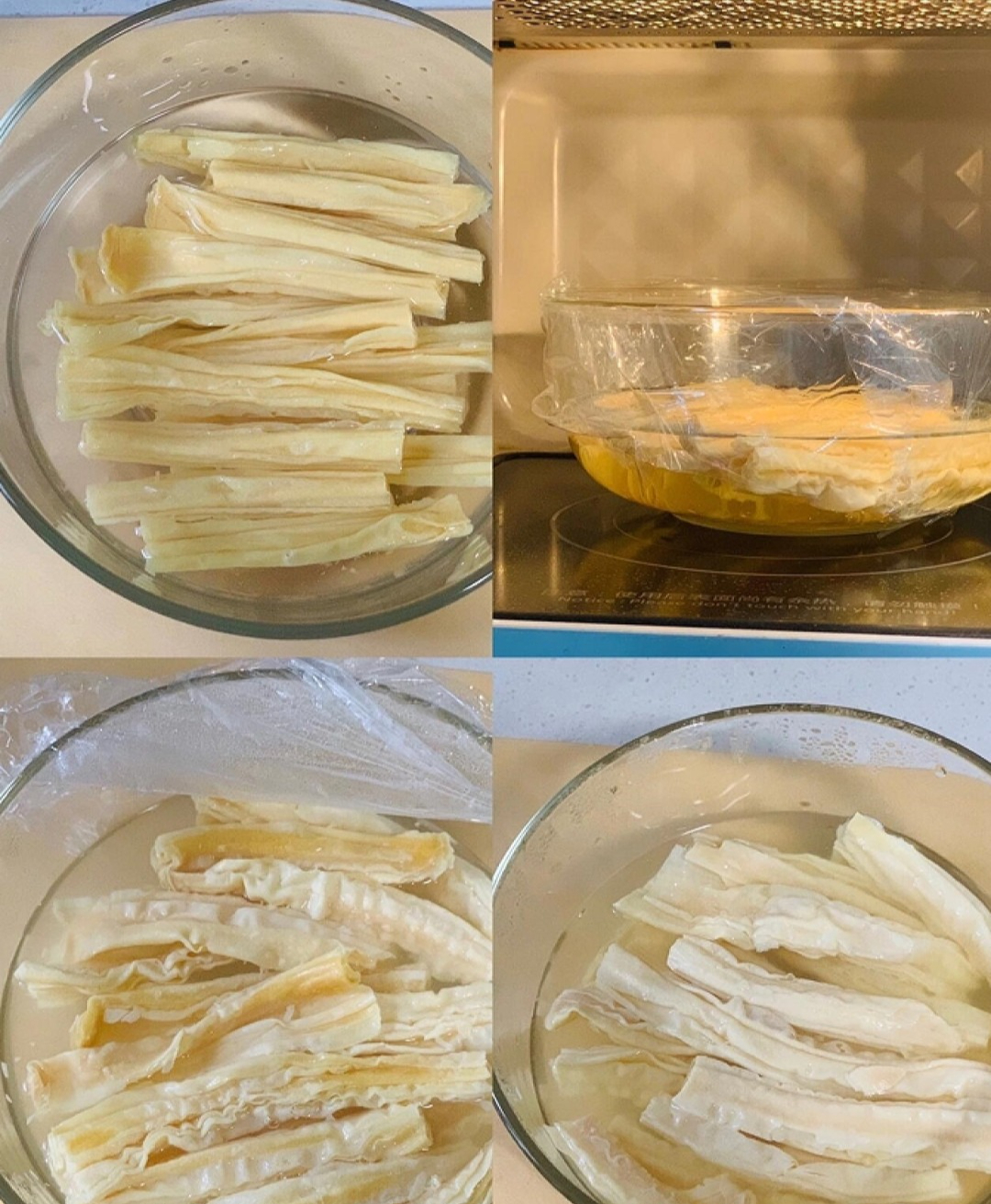 Những nguyên liệu như mộc nhĩ, nấm khô - trước khi chế biến thường cần ngâm nước khá lâu. Tuy nhiên, nếu cho vào bát nước và làm nóng bằng lò vi sóng trong vài phút, thực phẩm sẽ nở nhanh hơn rất nhiều. Cách này đặc biệt tiện khi cần nấu gấp mà không kịp chuẩn bị từ trước.