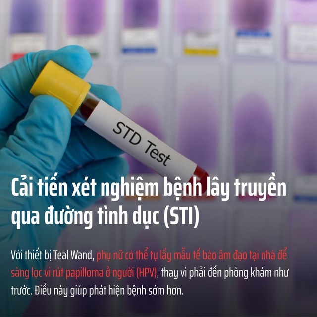 Năm 2025, các công cụ xét nghiệm tại nhà đã có bước tiến rõ rệt. Với thiết bị Teal Wand, phụ nữ có thể tự lấy mẫu tế bào âm đạo tại nhà để sàng lọc vi rút papilloma ở người (HPV), thay vì phải đến phòng khám như trước.