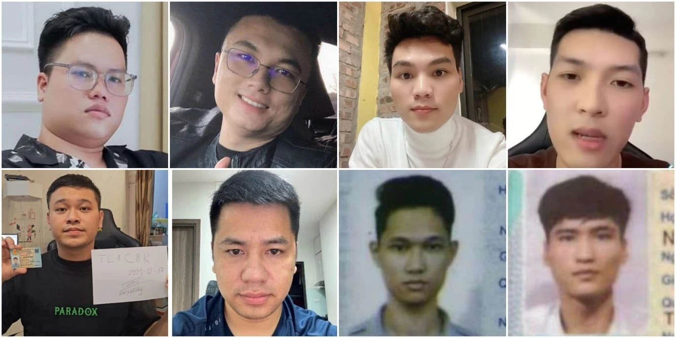 Chân dung 8 thành viên bị cáo buộc điều hành mạng lưới tương tác ảo quy mô lớn trên nền tảng X. (Ảnh: Tòa án quận Bắc Texas, Mỹ)