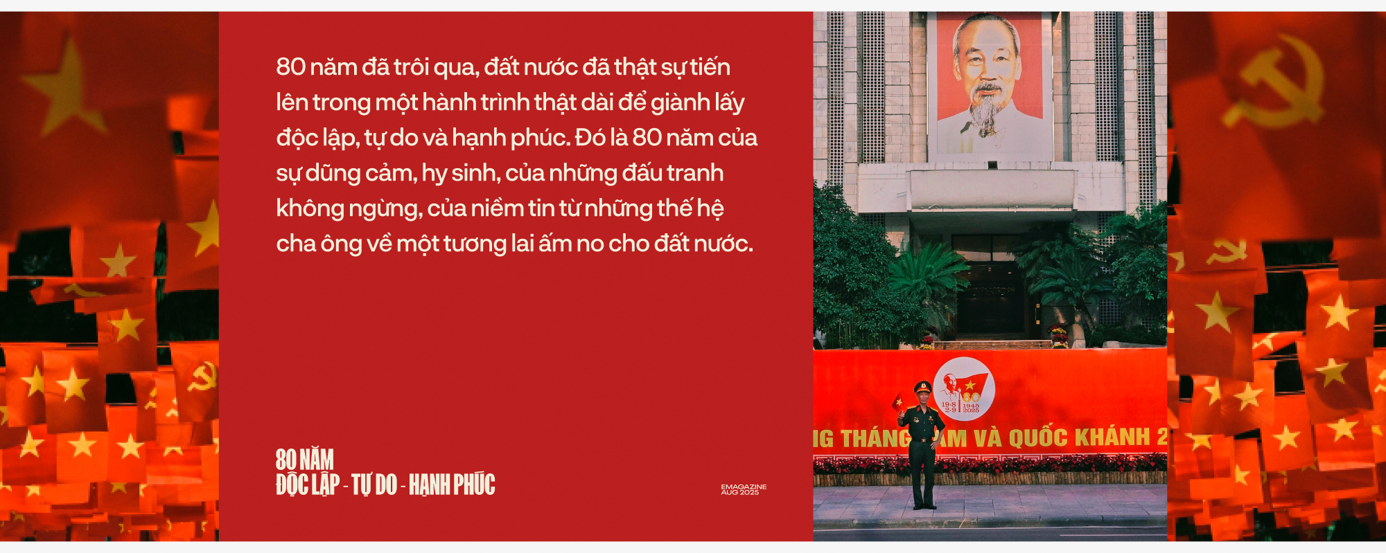 80 năm đã trôi qua, đất nước đã thật sự tiến lên trong một hành trình thật dài để giành lấy độc lập, tự do và hạnh phúc. Đó là 80 năm của sự dũng cảm, hy sinh, của những đấu tranh không ngừng, của niềm tin từ những thế hệ cha ông về một tương lai ấm no cho đất nước. 80 năm qua, chúng ta cũng đã trải qua những cuộc chiến lớn khác, những cuộc chiến mà chúng ta phải chứng kiến đất nước bị chia cắt, bị dày xéo dưới mưa bom bão đạn, chứng kiến những người lính đã vĩnh viễn để lại chiến trường tuổi thanh xuân, chứng kiến những sự mất mát và cả những vinh quang. Và 80 năm đó, chúng ta cũng chứng kiến một đất nước vẫn vươn lên mạnh mẽ sau tất cả những năm tháng đau thương để tạo nên phép màu của chính mình.