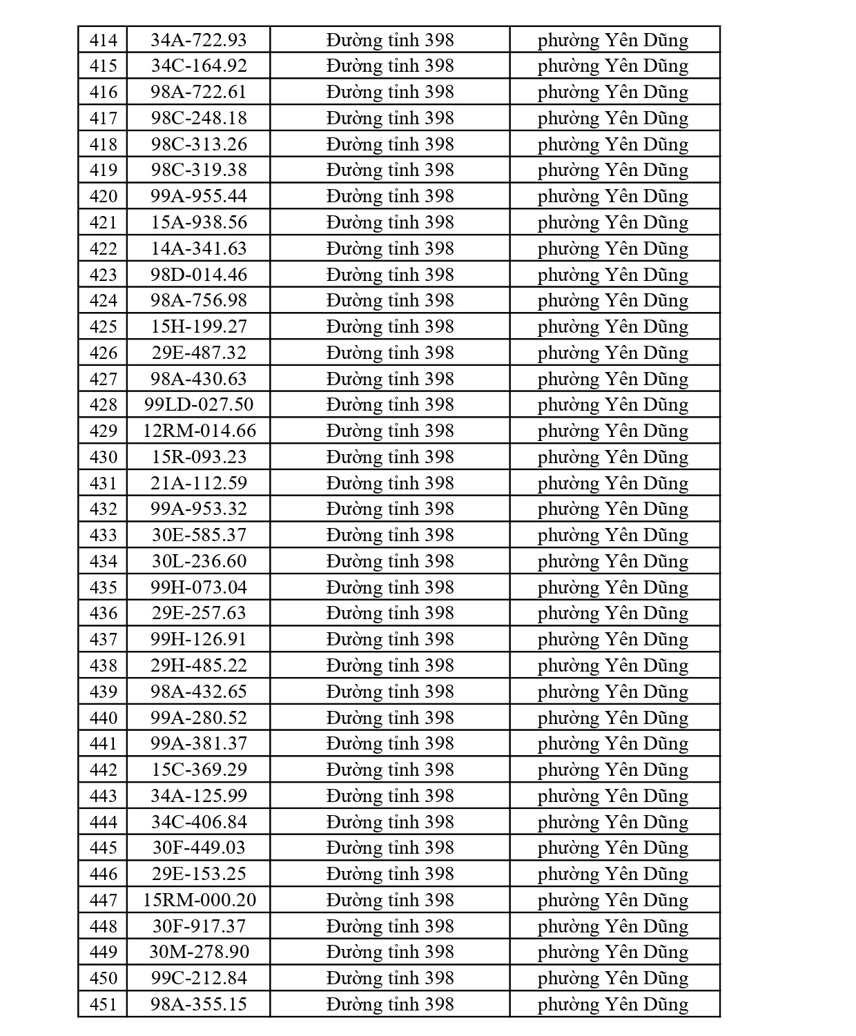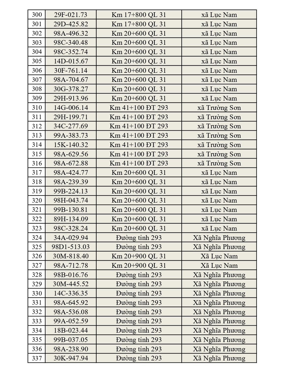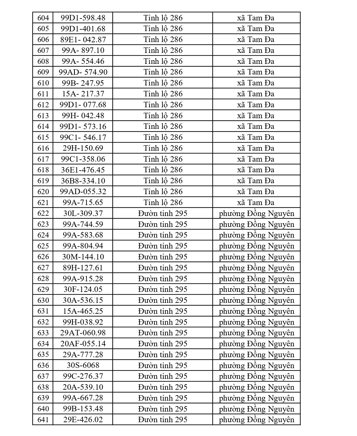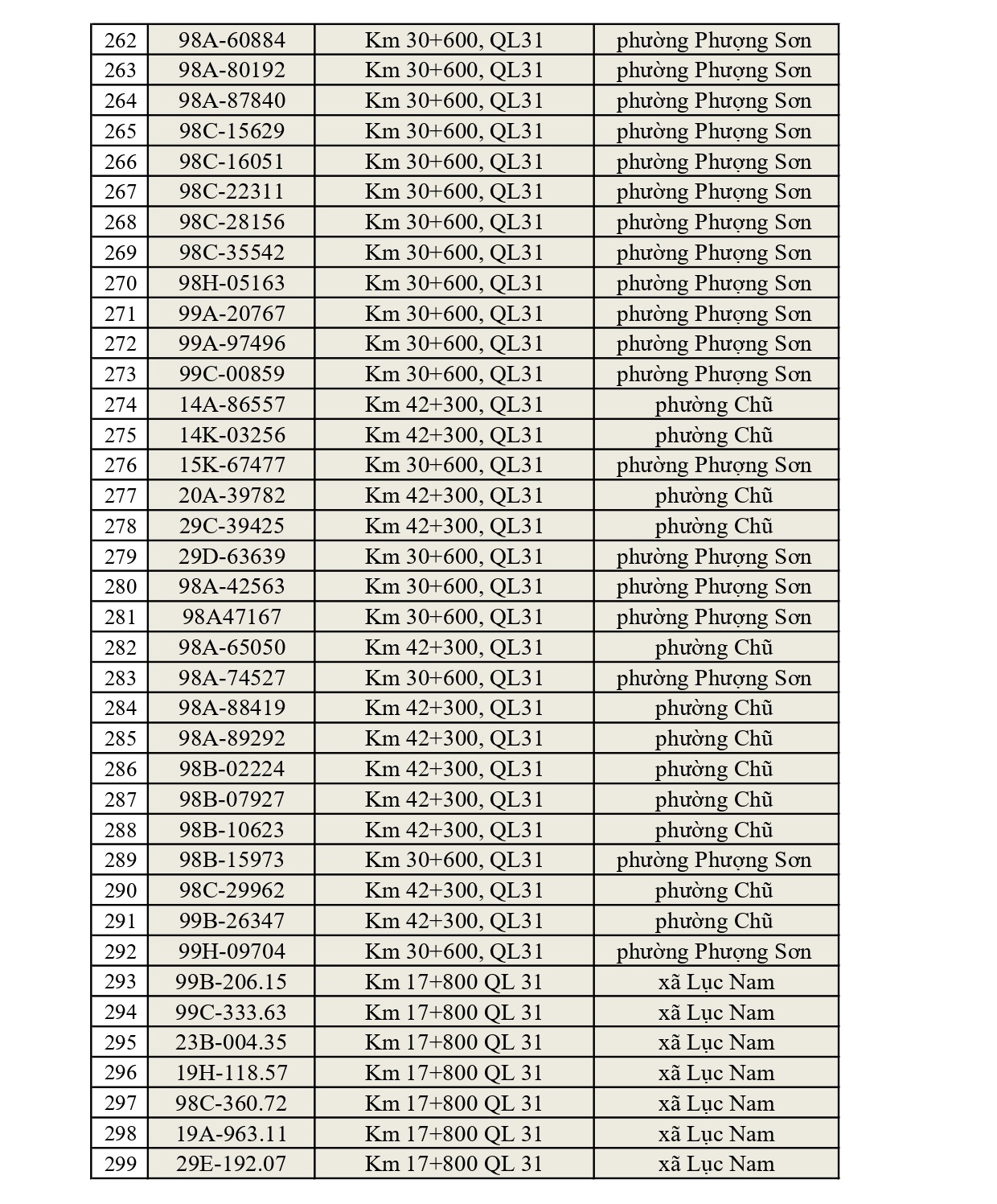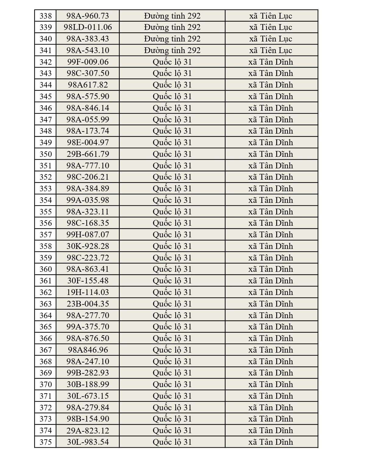- Đường tỉnh: Tổng 397 trường hợp (ĐT 276: 34; ĐT 284: 47; ĐT 286: 41; ĐT 287: 15; ĐT 288: 26; ĐT 293: 75; ĐT 295: 23; ĐT 295B: 4; ĐT 298: 30; ĐT 299: 36; ĐT 398: 66).