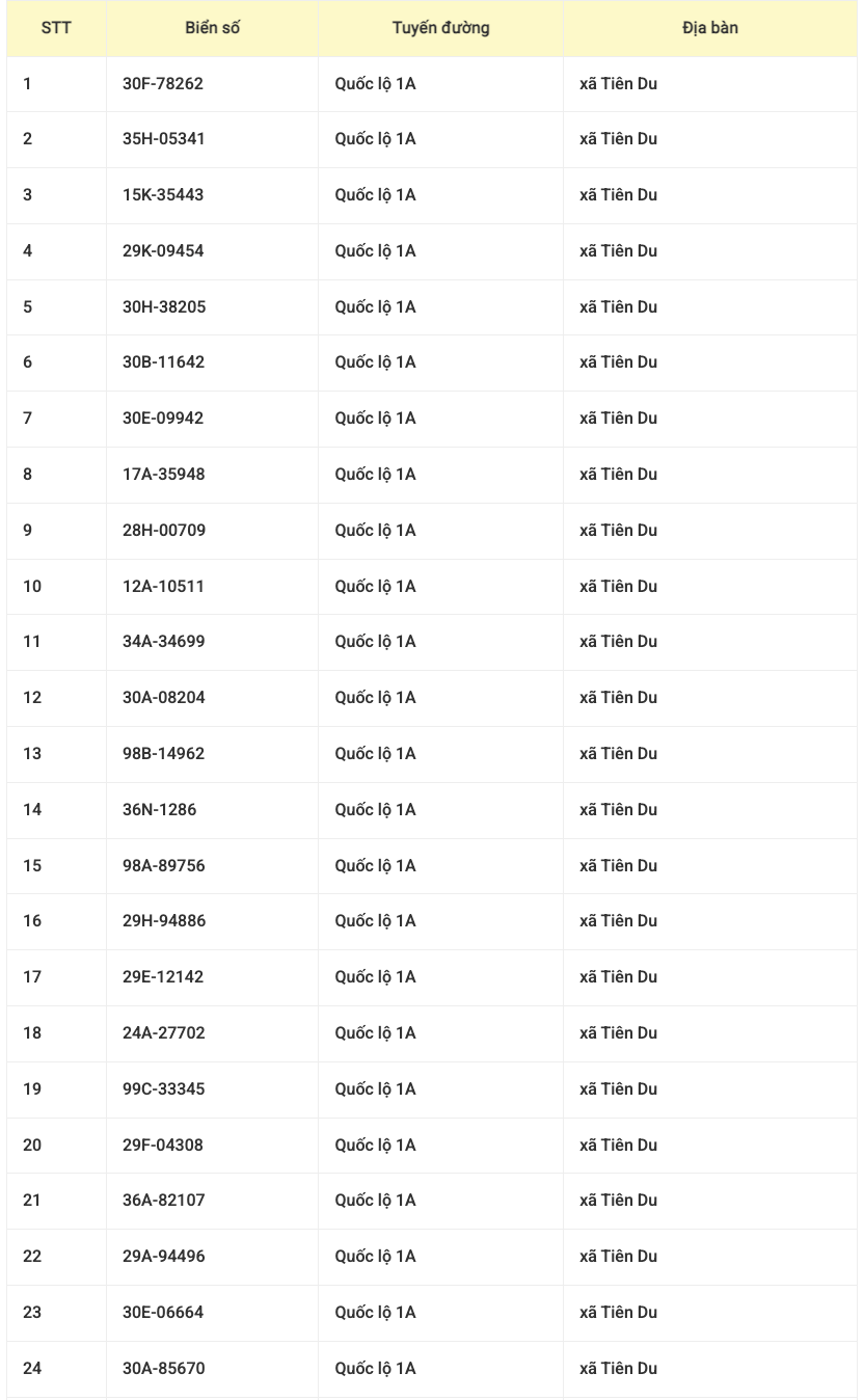 Sau khi trích xuất dữ liệu từ hệ thống camera, lực lượng chức năng đã lập danh sách và gửi thông báo phạt nguội tới chủ phương tiện theo quy định. Đáng chú ý, phần lớn vi phạm tập trung trên các tuyến quốc lộ trọng điểm và những tuyến đường tỉnh có mật độ phương tiện cao, đặc biệt là các trục giao thông đóng vai trò cửa ngõ kết nối liên tỉnh.