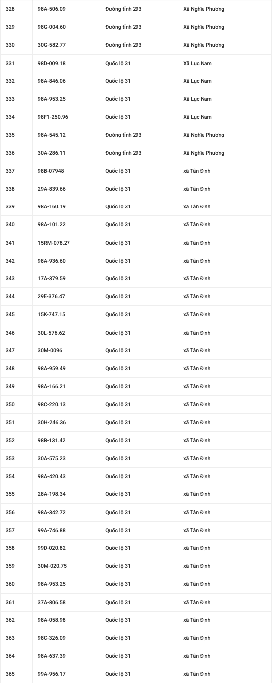 Riêng trên các tuyến quốc lộ, tổng cộng 471 trường hợp vi phạm đã được phát hiện, gồm: Quốc lộ 1A với 163 trường hợp, Quốc lộ 17 có 143 trường hợp, Quốc lộ 31 ghi nhận 87 trường hợp, Quốc lộ 18 có 40 trường hợp và Quốc lộ 37 có 38 trường hợp.