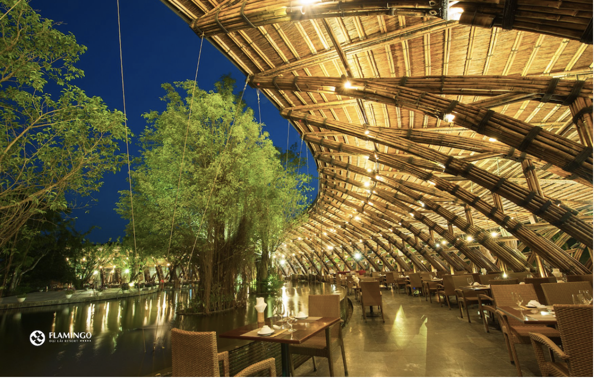 Nằm trong khuôn viên Flamingo Đại Lải (Vĩnh Phúc), Bamboo Wing Restaurant là công trình kiến trúc tre tiêu biểu do kiến trúc sư Võ Trọng Nghĩa thiết kế.