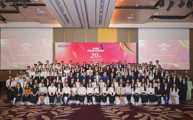 Tối 22.11, Lễ trao Học bổng AEON đã được tổ chức tại Hà Nội với sự phối hợp giữa AEON Việt Nam và các trường Đại học, dưới sự ủy thác của Quỹ AEON 1%. Sự kiện năm nay đồng thời đánh dấu 20 năm chương trình học bổng AEON 1%, với sự tham dự của các cựu sinh viên từng nhận học bổng.