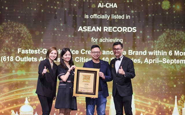 Ngày 26/10/2025, tại Hội nghị Cấp cao ASEAN tại Kuala Lumpur, Ai-CHA đã ghi dấu ấn xuất sắc khi được vinh danh là thương hiệu kem và trà phát triển nhanh nhất ASEAN. Với con số ấn tượng lên tới 618 cửa hàng trên 336 thành phố thuộc 10 quốc gia, thương hiệu đã đạt được kỷ lục tăng trưởng chưa từng có chỉ trong 6 tháng (từ tháng 4 đến tháng 9 năm 2025).