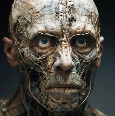 Ngay cả những hình ảnh do AI tạo ra về con người tương lai không theo đuổi xu hướng gắn dây điện lên mặt cũng vẫn khá đáng sợ. (Ảnh: UNILAD)