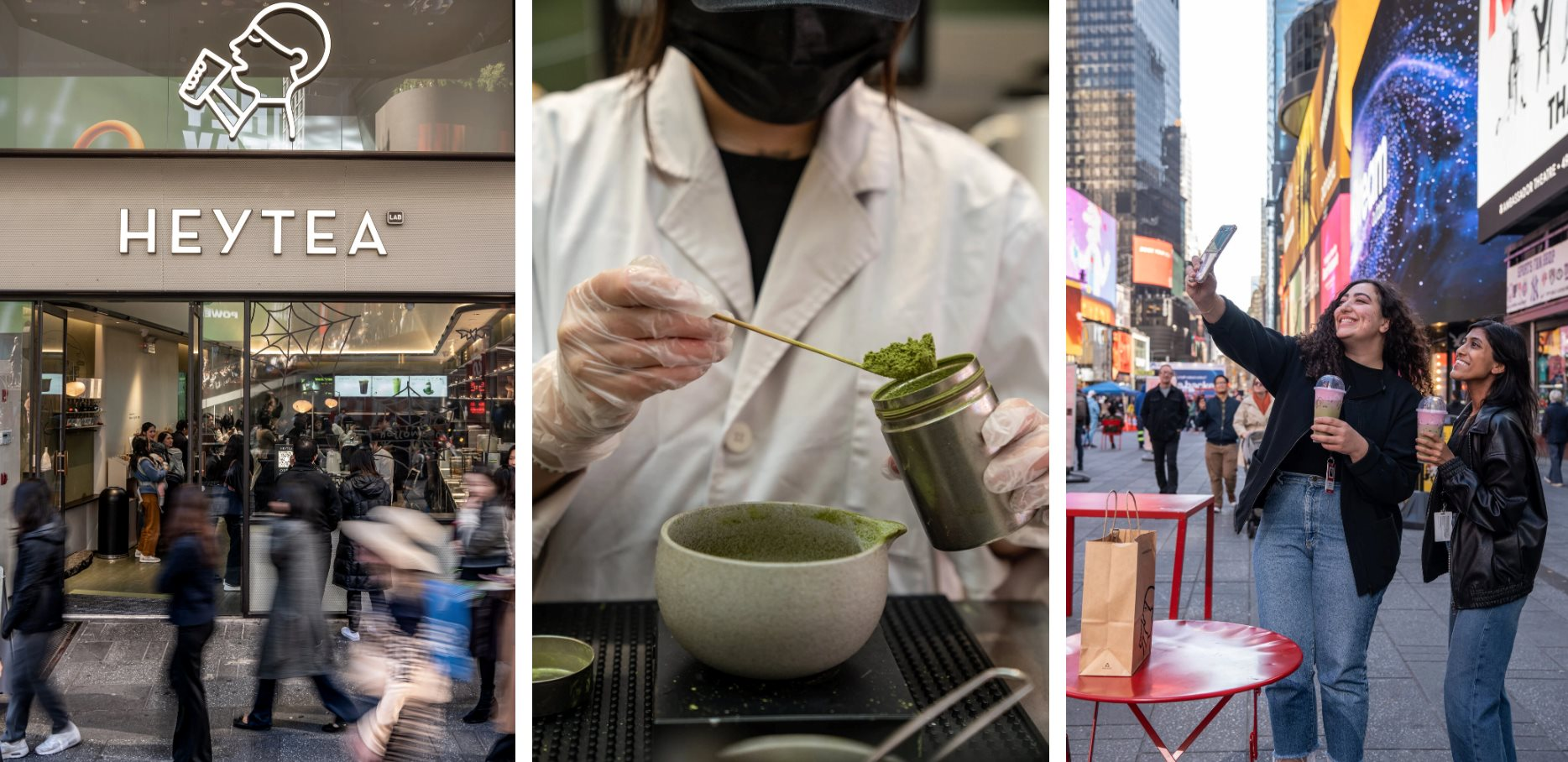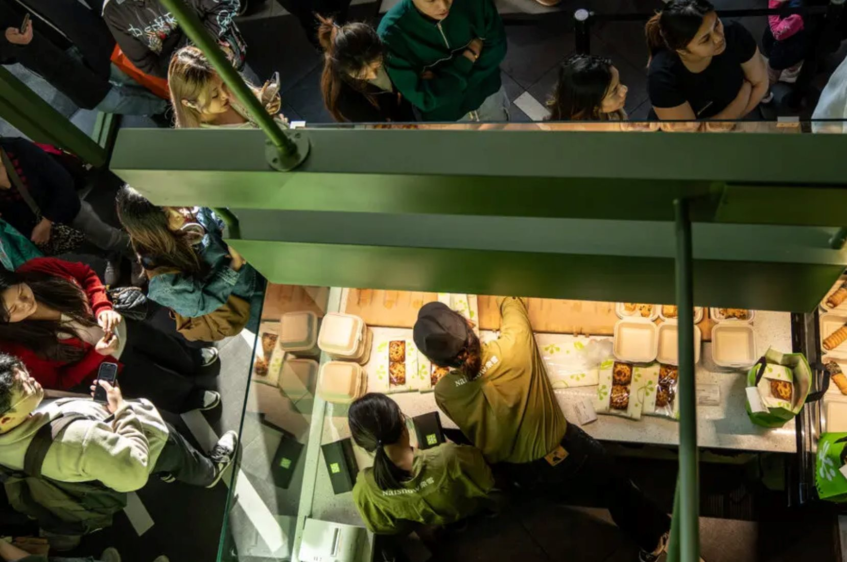 Vào một buổi chiều gần đây, tại cửa hàng Heytea ở Quảng trường Thời đại, nhiều nhóm khách hàng xếp hàng dài bên ngoài cửa để chờ mua những loại đồ uống pha chế cầu kỳ như trà trái cây đặc trưng phủ bọt phô mai.
