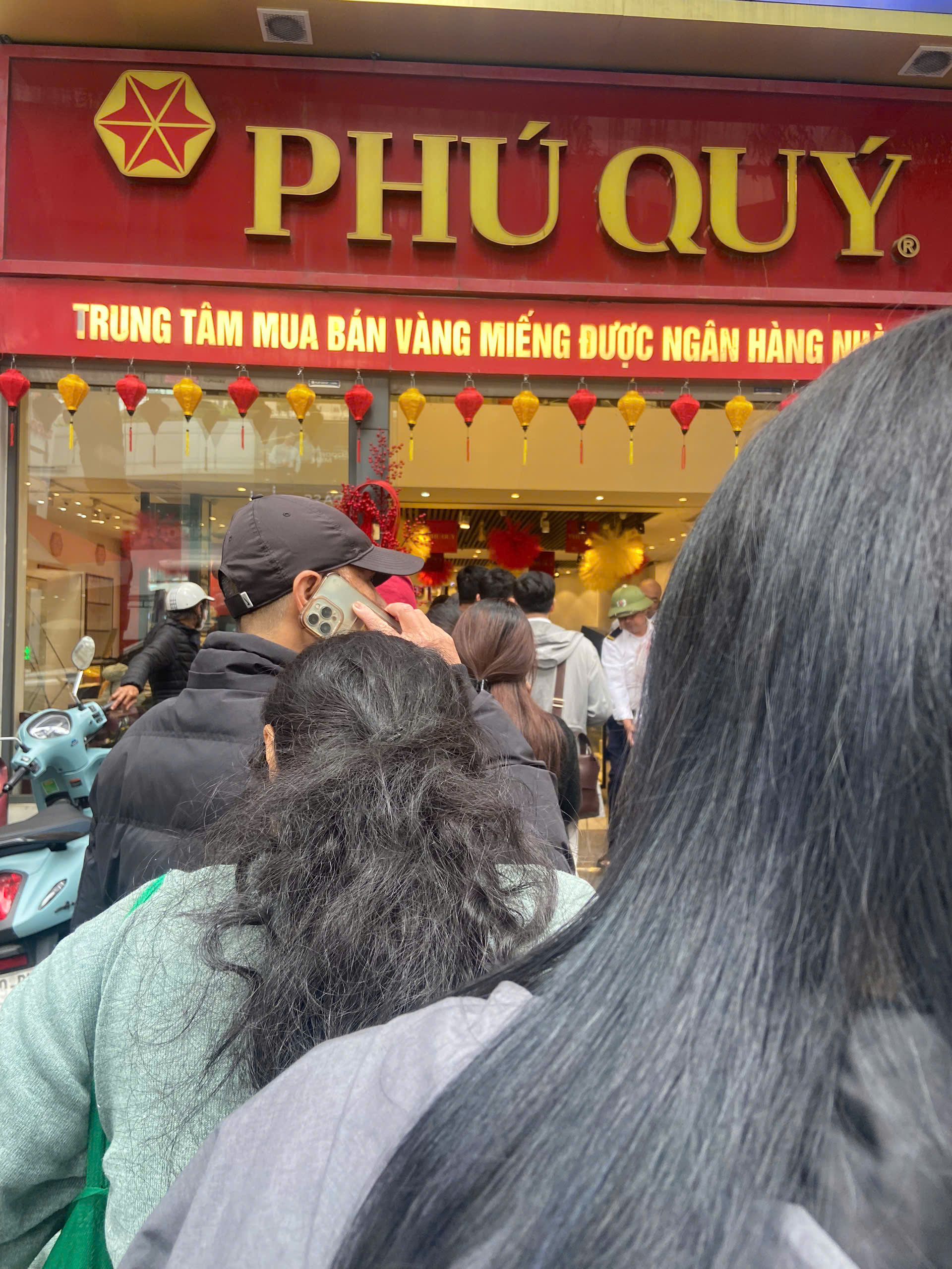 Khoảng 9h sáng hôm nay (23/2), lượng khách xếp hàng mua vàng, mua bạc tại Cửa hàng Phú Quý cơ sở 329 Cầu Giấy (Hà Nội) đã tràn xuống lòng đường. Nhiều người đi từ sớm với hy vọng mua vàng khai xuân đã phải ra về vì Cửa hàng thông báo chỉ bán các sản phẩm bạc trong buổi sáng. Còn các sản phẩm vàng tích lũy, phải đến buổi chiều mới "mở cửa giao dịch".