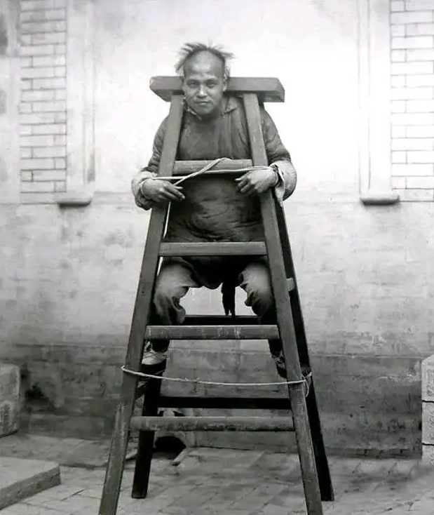 Cuối thời nhà Thanh, các loại hình dụng cụ tra tấn được chế tác ngày càng tinh vi, phần lớn nhằm mục đích răn đe và thị uy tội phạm. Tuy vậy, người tù trong bức ảnh dường như không quá căng thẳng: dù tay chân bị trói chặt, anh ta vẫn nở nụ cười, tư thế tuy khó coi nhưng không thể hiện sự đau đớn quá mức.