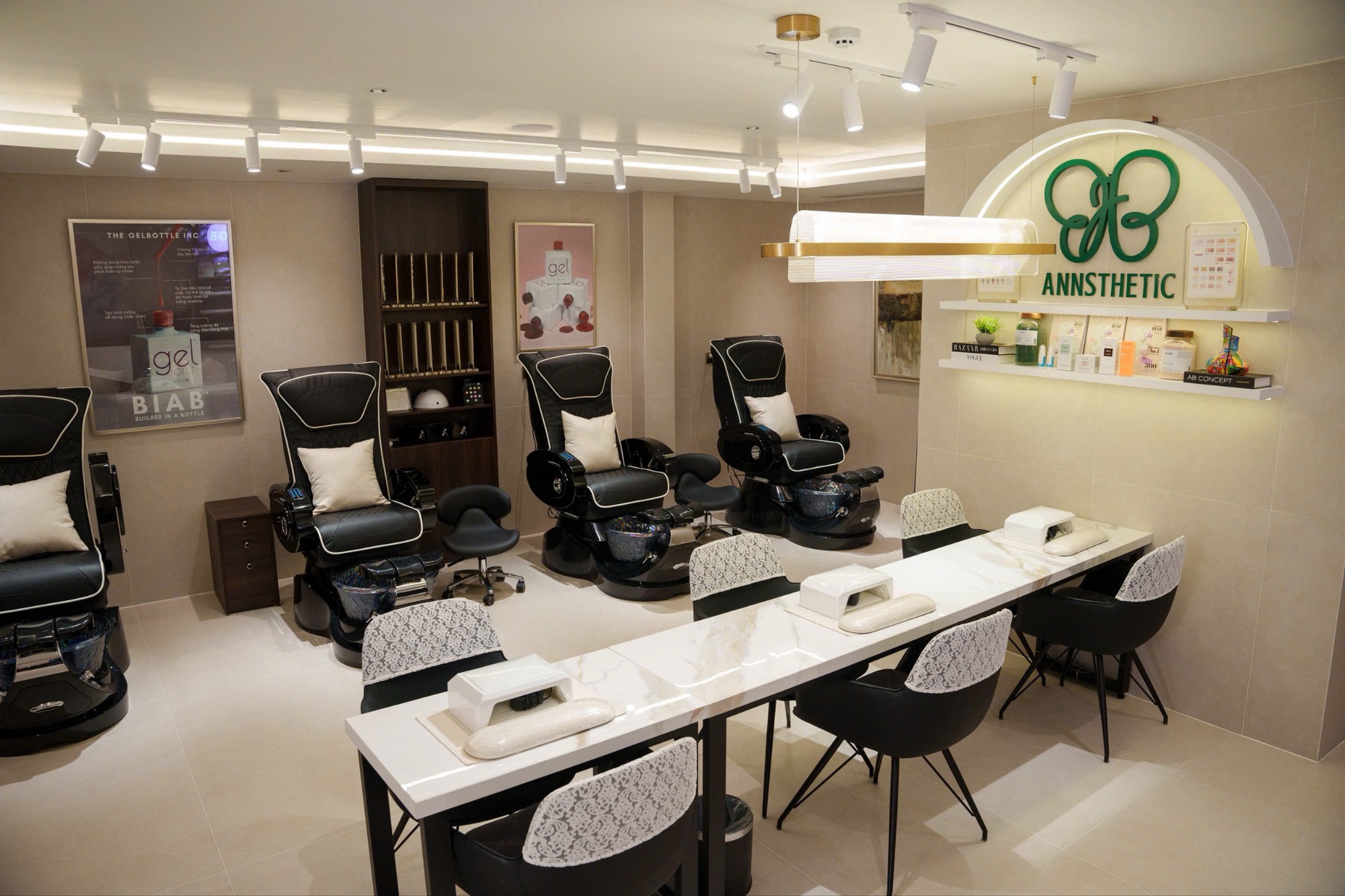 Không dừng ở điều trị da liễu, Anna đang ấp ủ hệ sinh thái beauty 5 mảng: Nail – Chăm sóc da – Đôi mắt – Mái tóc – Nha khoa thẩm mỹ. Hiện ở tầng hầm, một không gian nail được thiết kế như quầy bar mini, nơi khách vừa chăm sóc móng và vùng da xung quanh, vừa thưởng thức rượu vang, nghe nhạc du dương.
