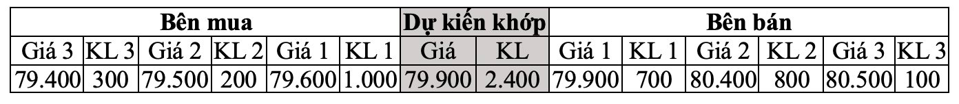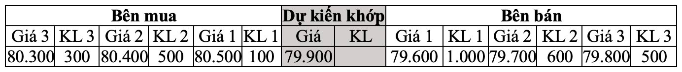 Giá khớp dự kiến: 79900; khối lượng khớp dự kiến: 2400