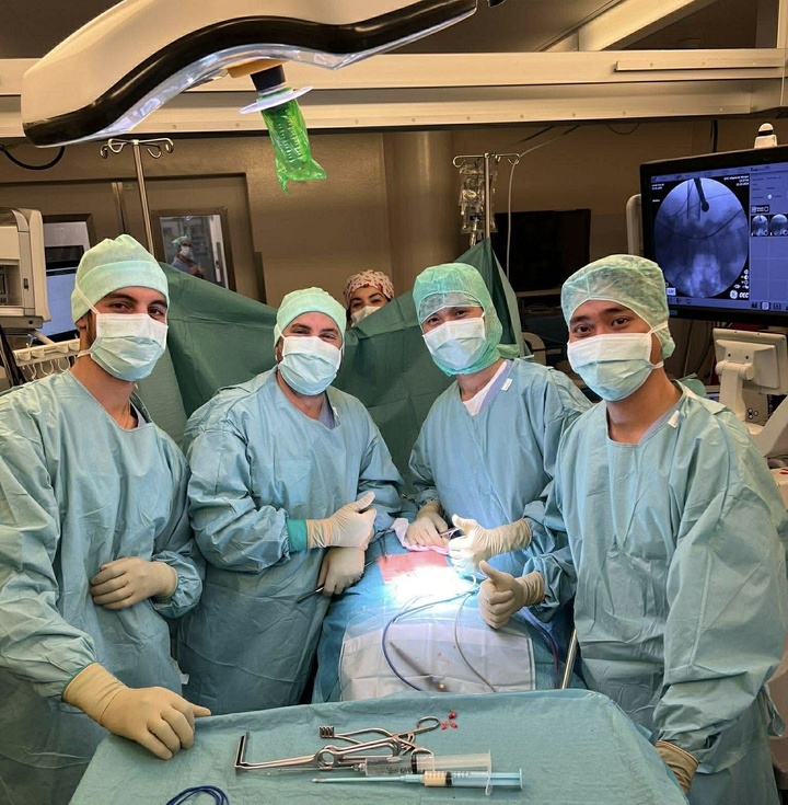 BS Tiến (bên phải) trong một ca mổ ở Thuỵ Sĩ. (Ảnh: BS cung cấp)
