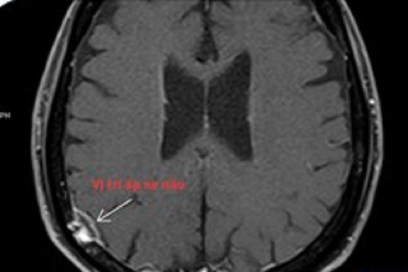 Kết quả kiểm tra hình ảnh phát hiện một ổ áp xe trong não người bệnh có kích thước khoảng 7x15mm, kèm tổn thương viêm khu trú màng não tại vùng ranh giới giữa thùy chẩm và thùy thái dương bên phải. Điều này cho thấy nhiễm trùng đã lan tới hệ thần kinh trung ương, làm ca bệnh trở nên đặc biệt phức tạp và tiềm ẩn nhiều nguy cơ đe dọa tính mạng.